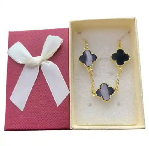 GARGANTILLA DORADA CON DIJE TIPO TREBOL DE CUATRO PETALOS COLOR NEGRO