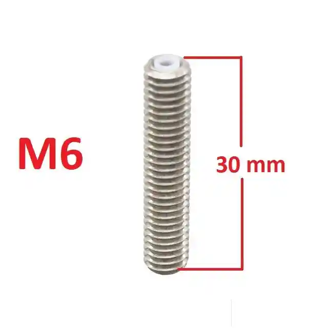 Tamaño: 30 mm * M6 Material: Acero inoxidable Peso: 4g Rosca M6 Diametro exterior del tornillo: 6 mm Ademas del tubo interior de teflon, el troquel mide aproximadamente 20 mm, tiene un diametro exterior de 4 mm y un diametro interno de 2 mm. Adecuado para makerbot o 1.75mm estructura especial de consumibles de impresora 3D LA COMPRA INCLUYE: 1X GARGANTILLA EXTRUSOR HOTEND 1.75mm M6 30mm