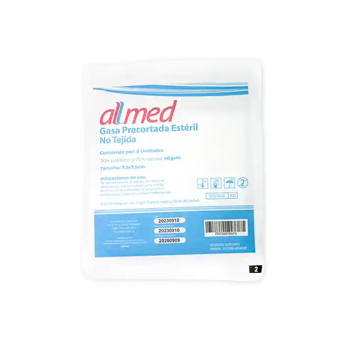 La Gasa Precortada No Tejida Allmed Esteril 7.5cmx7.5cm es una solución ideal para el cuidado de heridas y primeros auxilios. Este producto está diseñado con materiales de alta calidad, proporcionando una excelente protección y absorción, lo que lo convierte en una opción confiable para profesionales de la salud y uso doméstico. Su esterilización asegura que las heridas sean tratadas de forma higiénica, reduciendo el riesgo de infecciones. Características principales: - Gasa precortada no tejida, lo que facilita su uso y aplicación. - Esterilizada, ideal para su uso en entornos médicos. - Medida de 7.5 cm x 7.5 cm, perfecta para una amplia variedad de aplicaciones. - Alta capacidad de absorción y transpirabilidad para promover la cicatrización de heridas. - Su diseño permite un manejo fácil y rápido, adecuado tanto para profesionales de la salud como para uso personal. Especificaciones técnicas: - Tamaño de cada gasa: 7.5 cm x 7.5 cm. - Tipo: No tejida. - Esterilización: Método de esterilización por radiación gamma, asegurando la eliminación de bacterias y otros microorganismos. - Presentación: Paquete con 5 unidades. Contraindicaciones y precauciones: - No utilizar sobre heridas infectadas o inflamadas sin supervisión médica. - Evitar el contacto con los ojos y mucosas. - Utilizar solo para el propósito indicado. En caso de reacción adversa, suspenda su uso y consulte a un profesional de la salud. - Mantener fuera del alcance de los niños. Almacenaje: - Conservar en un lugar limpio, seco y fresco. Evitar la exposición directa a la luz solar y fuentes de humedad para preservar sus propiedades esterilizadas. Incluye: - 1 paquete que contiene 5 unidades de Gasa Precortada No Tejida Allmed Esteril 7.5cmx7.5cm. Garantía: - Garantía por defectos de fabricación, asegurando la calidad y fiabilidad del producto. Este producto es una excelente opción para quienes buscan calidad y seguridad en sus suministros médicos, asegurando el cuidado adecuado para cualquier tipo de herida o corte.