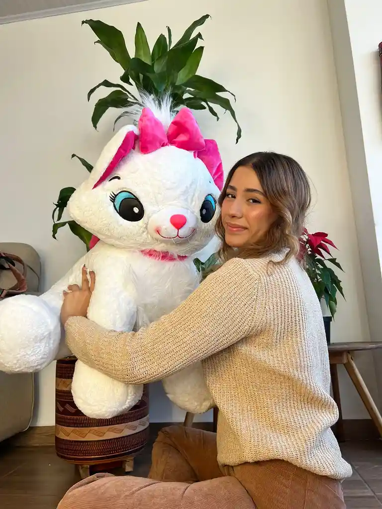 Hermoso peluche de Gata merie Gigante. Tiene un hermoso pelaje extra suave Nuestros peluches son fabricados con materiales de primera calidad, relleno de algodón siliconado antialergico suave que no se deforma ni endurece con el tiempo y brinda sensación de suavidad al tacto.