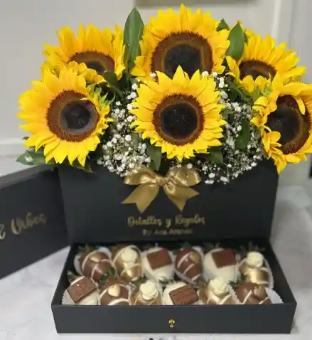 Gaveta de lujo con girasoles Colores de caja de acuerdo a disponiblidad.