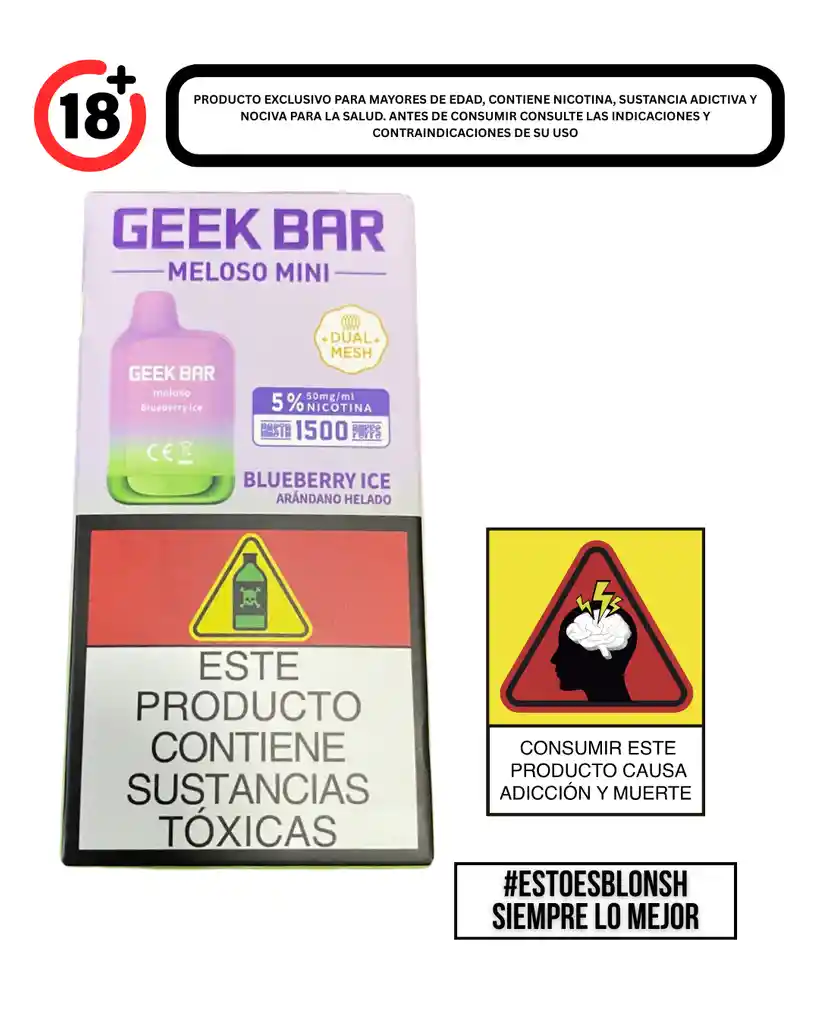 MeloSO Mini 1.5K Puffs con sabor Blueberry Ice. Garantía por defectos de fabricación y funcionamiento durante un periodo razonable; exige comprobante de compra; cubre fallas de fábrica y rendimiento no conforme. No cubre daños por uso indebido, golpes, manipulación incorrecta o uso no autorizado.