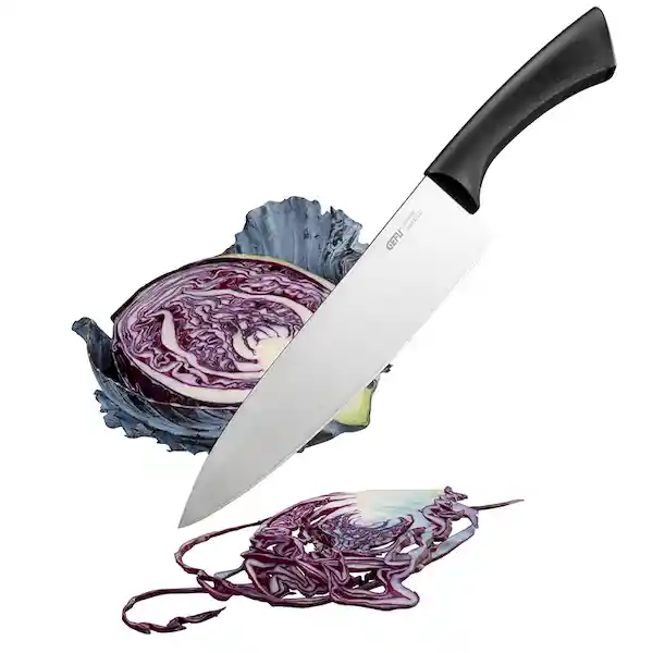 Cuchillo cocinero GEFU "Senso" 21 cm acero de hoja japonesa de alta calidad El cuchillo ofrece una sujeción segura gracias a la parte inferior de goma del mango. ultraligero y extremadamente nítido mango de plástico ergonómico con parte inferior de goma para una sujeción segura Longitud de la hoja 20,5 cm HRC 50 - 52 Hoja japonesa acero / plástico Aptas para el lavavajillas