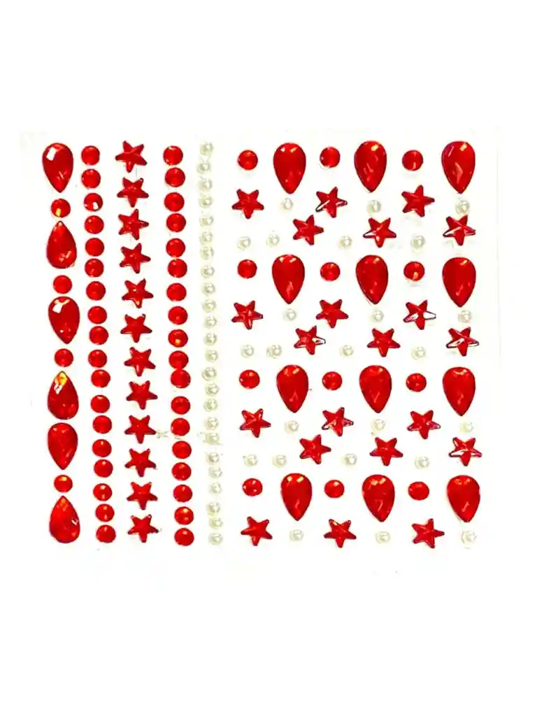 Gemas Adhesivas Rojas Para Rostro Cabello Uñas Sticker 3d Ref C1-1465-09