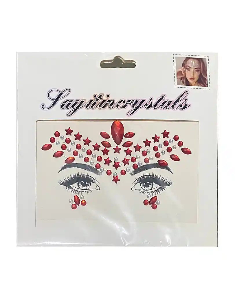 Gemas Piedras Adhesivas Para Rostro Color Rojo Halloween Carnaval Hora Loca Party