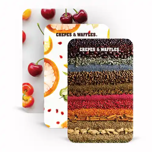 " ¡Regala momentos! Sorprende con un bono de regalo Crepes &Waffles Vigencia de un año desde la fecha de activación. Redención, únicamente, a través de domicilios propios de Crepes y Waffles y en nuestros restaurantes." Las tarjetas de regalos tienen un 10% como tarifa de servicio
