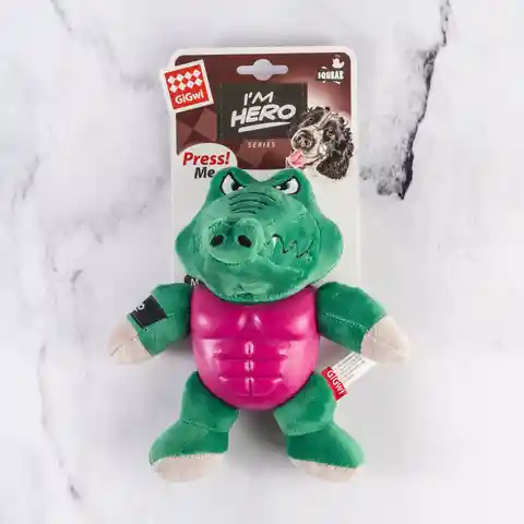 Este cocodrilo de Gigwi es perfecto para jugar al interior del hogar. La armadura de TPR hace que este juguete sea más resistente. Al exterior es suave y esponjoso como un peluche.