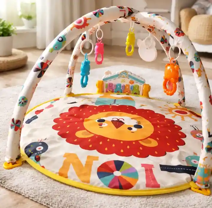 El Gimnasio Bebés Juguete Tapete Alfombra Música 7 En 1 HR5632R de Kidshop es la opción ideal para estimular el desarrollo de tu pequeño desde sus primeros días. Diseñado con un encantador personaje de reno, este gimnasio ofrece un entorno divertido y seguro para que los bebés exploren y jueguen. Con una variedad de juguetes colgantes y música, cada sesión de juego se convierte en una experiencia sensorial enriquecedora. Este tapete de actividades es adecuado para bebés desde el nacimiento hasta los 18 meses, permitiendo que crezca junto a tu hijo. La barra de juguetes desmontable facilita el acceso a los juguetes, mientras que su diseño ligero y portátil permite moverlo con facilidad. Con un peso máximo soportado de 45 kg, es perfecto para que los más pequeños disfruten de su tiempo de juego. La línea GIMNASIO de Kidshop se enfoca en la calidad y la seguridad, asegurando que cada elemento esté diseñado para el bienestar de tu bebé. Este modelo 2026 combina funcionalidad y diversión, convirtiéndose en un elemento esencial en el desarrollo temprano. Proporciona un espacio ideal para que los bebés se muevan, aprendan y se diviertan en un ambiente estimulante. GIMNASIO HR5632 MEDIDAS CAJA: PESO 1 KL 29*17*43 COLORES: AMARILLO: LEON, ROSADO: VENADO MEDIDAS DEL PRODUCTO 88 CM DIAMETRO ACCESORIOS: 5 MOVILES, 1 CABEZAL PIANO 35*20 CM, 2 BARRAS DE ESPUMA DE 1,42 MT*3 CM, 2 LATERALES 37*10 CM, 2 BASES 12*7 CM, 2 TORNILLOS DE 7*14 CM, Aviso legal La edad mínima recomendada es: 0 meses.