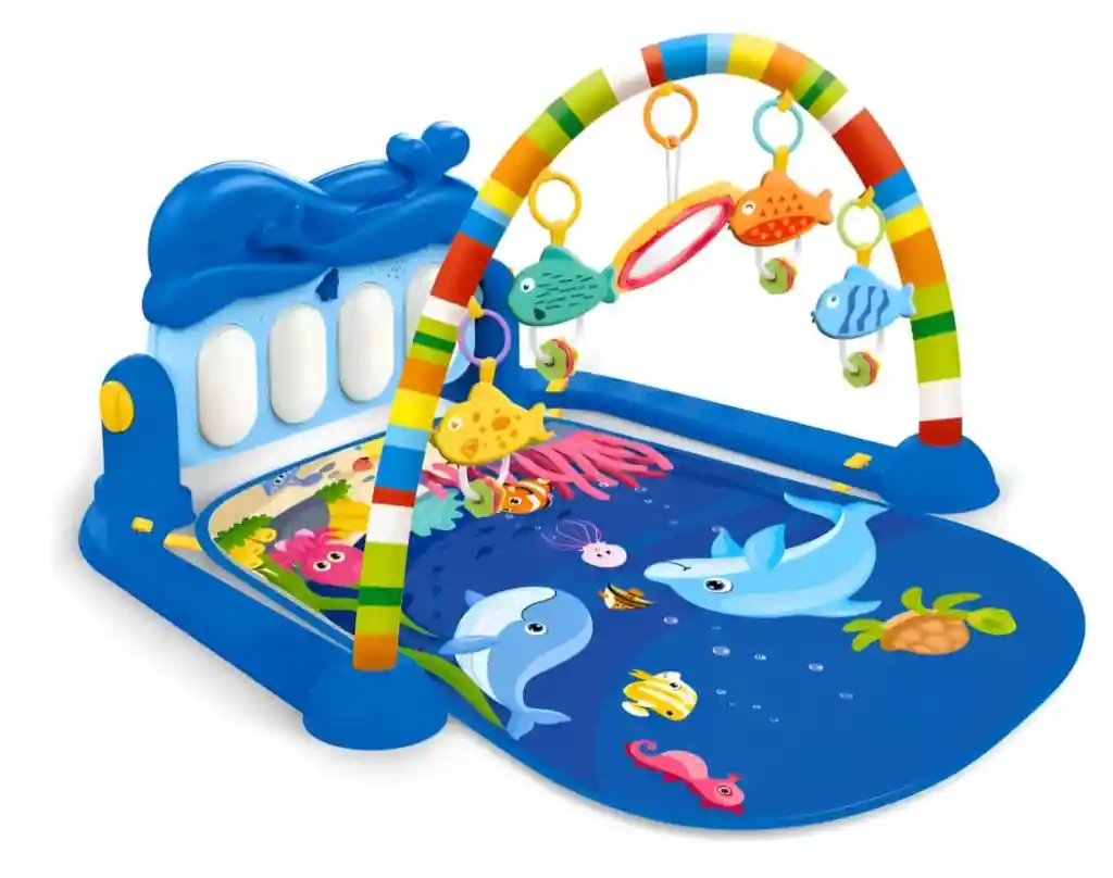 Dale a tu bebé diversión y aprendizaje desde sus primeros meses con este hermoso gimnasio interactivo 2 en 1, ideal para estimular sus sentidos mientras juega cómodamente. ✨ Diseño colorido y seguro Incluye un tapete suave con temática marina, arco con juguetes colgantes y un piano musical, perfecto para mantener al bebé entretenido y motivarlo a moverse. ✅ Beneficios para el desarrollo del bebé: 👶 Estimula la motricidad (movimiento de manos y piernas) 👀 Desarrolla la coordinación visual 👂 Estimula el oído con sonidos y música ✋ Mejora el sentido del tacto y la curiosidad 🧠 Promueve el aprendizaje temprano 🎵 Piano interactivo El bebé puede patear o tocar las teclas para activar sonidos, ayudando al desarrollo físico y sensorial. 🧩 Incluye juguetes colgantes Con figuras divertidas y espejo para mantener su atención y estimular el juego. 🔧 Fácil de armar y usar Ideal para usar en casa, habitación o sala. Además es desmontable y práctico para guardar. 👶 Edad recomendada: 0 meses en adelante 📦 Perfecto para regalo Ideal para baby shower, recién nacidos o primeras etapas de crecimiento. 🌟 ¡Un juguete completo que combina diversión, música y aprendizaje en un solo producto