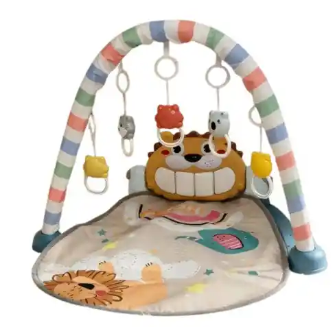 El Gimnasio Tapete Musical Para Bebé Kidshop 2026 es la opción ideal para estimular el desarrollo de tu pequeño desde sus primeros días. Con un encantador diseño de león, este gimnasio de actividades ofrece un entorno seguro y divertido para que los bebés exploren y jueguen. Equipado con juguetes colgantes que fomentan la curiosidad y la coordinación, este tapete musical es perfecto para bebés desde el nacimiento hasta los 12 meses. Su estructura permite que los pequeños se diviertan mientras desarrollan habilidades motoras y sensoriales. El peso máximo soportado es de 15 kg, lo que garantiza su durabilidad y seguridad durante el crecimiento del bebé. La barra de juguetes desmontable facilita el acceso a los juguetes y permite una experiencia de juego personalizada. Con un diseño atractivo y funcional, el Gimnasio Tapete Musical Para Bebé Kidshop 2026 es una excelente adición a cualquier hogar, proporcionando horas de entretenimiento y aprendizaje para los más pequeños. Ideal para padres que buscan un producto que combine diversión y desarrollo en un solo lugar. GIMNASIO REF HR5627 MEDIDAS CAJA: PESO 950 GR, 30*46*9 MEDIDAS DEL PRODUCTO 70*48*47 ACCESORIOS: 5 MOVILES, 1 CABEZAL PIANO, 2 LARGUEROS, 2 BASES, 2 TORNILLOS, 1 BARRA DE ESPUMA DE 1 MT*3 CM