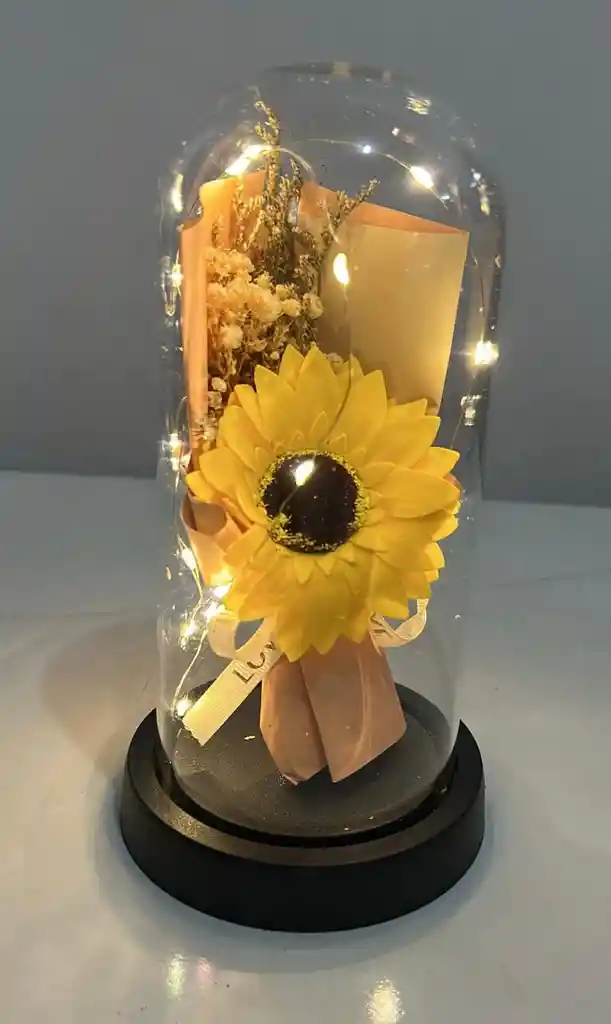Girasol Eterno Grande Con Luces En Capsula Girasol Preservado Girasol Inmortalizado