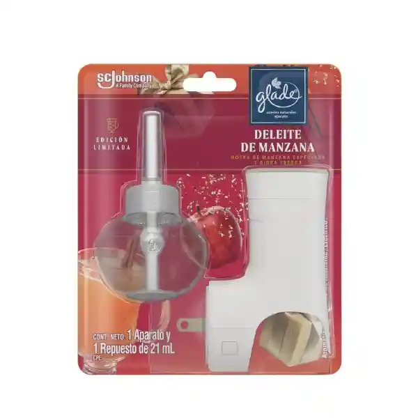 Incluye 2 Unidades. Repuesto 21 mL + Aparato 1 Und. Edición Limitada. Di Hola a la Nueva Edición Limitada ''Holiday Spirits'' de Glade. Haz Que tu Paladar Despierte Con el Dulce Sabor a Sidra de Manzana. Conecta tu Nuevo y Completamente Rediseñado Aparato y Siente el Renovador Aroma de Esta Fragancia Fresca Que te Llena de Alegría y Felicidad. Podrás Controlar la Emisión de Esta Fragancia y Tener Hasta 50 Días de Aroma Continuo en Cualquier Habitación de tu Hogar. Revive Los Invierno Navideños Con la Nueva Edición Limitada de Glade Burbujas de Celebración.