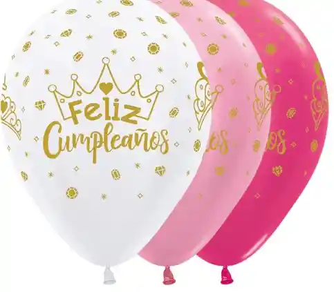 GLOBO BOMBA R-12 FELIZ CUMPLEAÑOS CORONAS X 12