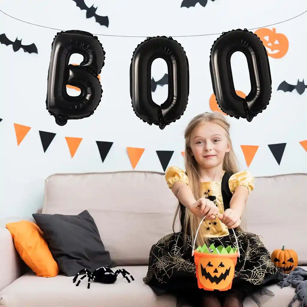 globo de halloween letra BOO tamaño de 45 cm Papel metalizado diseño conn tela araña Disponibilidad inmediata nota: los globos se envían sin inflar Si deseas adicionar otros Articulos a tu compra puedes escribirnos, para poder ayudarte.