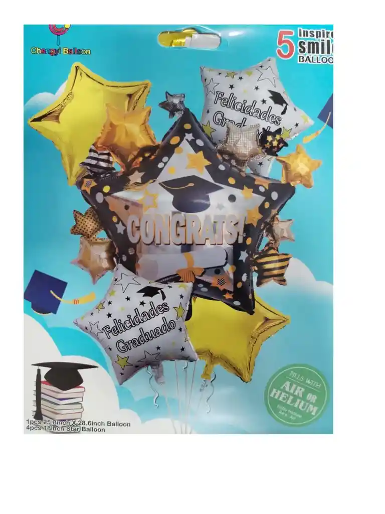 Celebra el éxito de tu graduado con nuestro hermoso Globo bouquet graduación 5pcs congrats! Este bouquet de globos es la manera perfecta de felicitar a tu graduado por su logro académico. Con un diseño elegante y festivo que incluye la palabra "Congrats!", estos globos son una forma colorida y alegre de expresar tu felicidad y admiración. Ya sea para una fiesta íntima o una gran celebración, este bouquet de globos añadirá un toque de alegría y emoción a cualquier evento de graduación. ¡Celebra este hito especial con estilo con este encantador bouquet de globos!