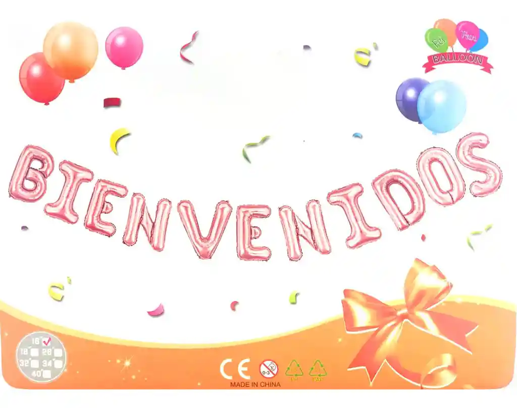 *********************GLOBOS Y PELUCHES MASMELO********************* Por tu compra te llevas: 1 Globo letrero bienvenidos oro rosa 40 cm de altura *Los globos se entregan desinflados, tu compra no incluye el montaje ni la decoración, el servicio de armado no lo tenemos disponible. sin embargo te damos todas las instrucciones para hacer de modo profesional. Si deseas adicionar otros articulos a tu compra puedes escribirnos, recuerda que Somos Globos y Peluches Masmelo Si necesitas variación en los colores, colocar un número, más globos o realizar otros cambios en el diseño original escribenos para ver si podemos hacerlo. Tenemos todo lo necesario para tus decoraciones, somos lo último en tendencias mundiales decorativas. Tenemos disponible: Vasos, platos, manteles, guirnaldas, cubiertos, globos de todo tipo, números, letreros, vela, Etc. Puedes encontrar los articulos de nuestra tienda en el siguiente link, copia y pega, si no encuentas lo que necesitas escribenos: https://www.rappi.com.co/tiendas/900280040-globosypeluchesmasmelo-mt-enc/decoracion-para-fiestas/globos-y-bombas
