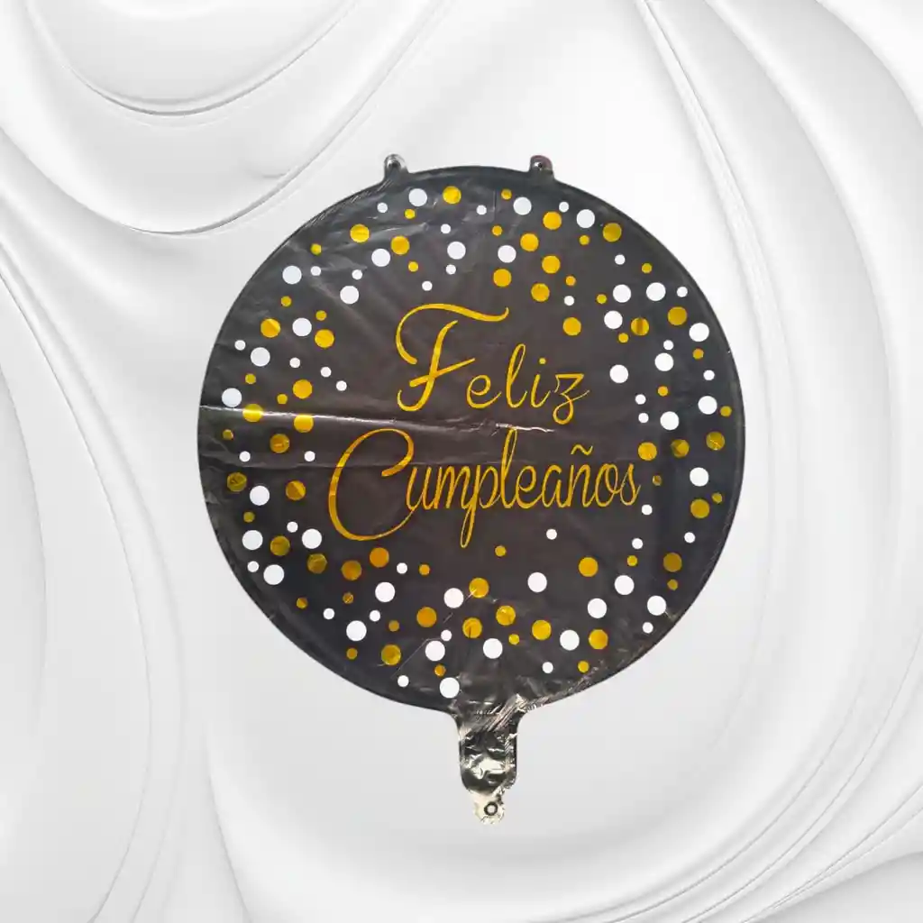 Globo redondo grande en color negro " No contiene helio" con un sofisticado diseño, acompañado del mensaje “Feliz Cumpleaños” ideal para cumpleaños elegantes y modernas o celebraciones de adultos, hombres y mujeres.
