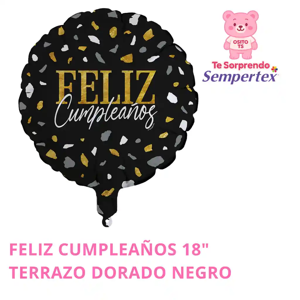 ESTE GLOBO NO VA INFLADO. GLOBO METALIZADO FELIZ CUMPLEAÑOS 18" TERRAZO DORADO NEGRO PERFECTO PARA TUS CELEBRACIONES SE PUEDE INFLAR CON HELIO.