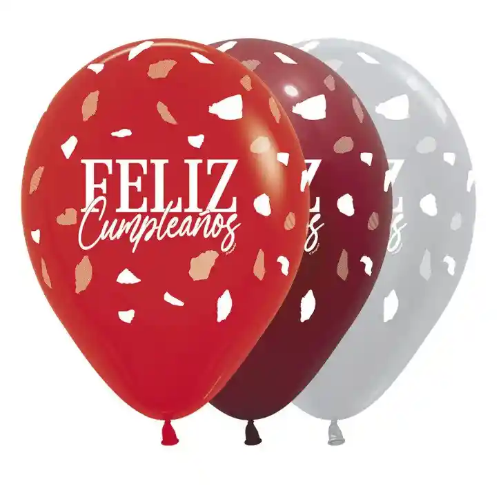 Globo Feliz Cumpleaños Terrazo Rojo Surtido R12 x 12 Globos