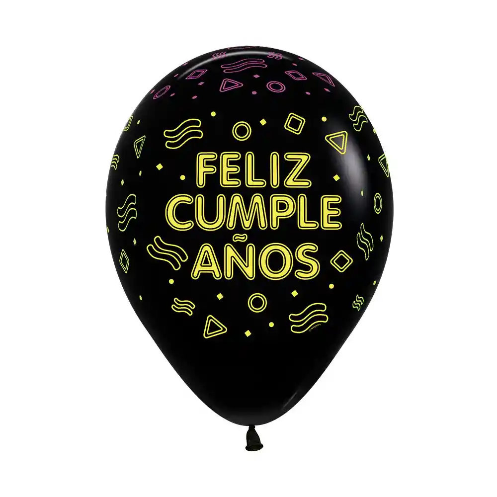 Globo Infinity Feliz Cumpleaños Fluorescente Fashion Negro R12 X 50 Globos Sempertex