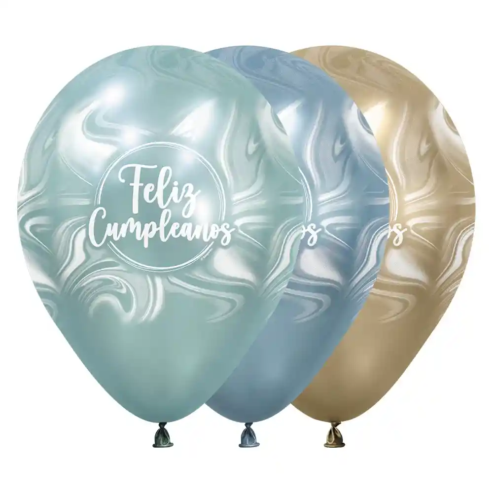 Globo Infinity Feliz Cumpleaños Marmoleado Acqua Silk Surtido R12 x 50 Unidades