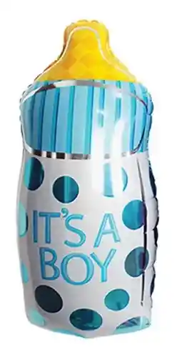 UNIDAD DE GLOBO METALIZADO ESTAMPADO BABY SHOWER NIÑO EN FORMA DE TETERO EN COLORES SURTIDOS DE 70 CENTIMETROS APROXIMADAMENTE.