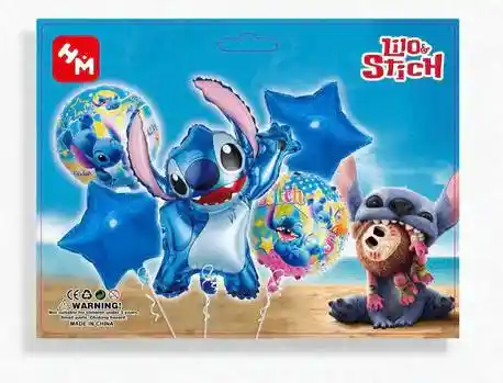 GLOBO METALIZADO BOUQUET 5 PIEZAS Lilo Y Stitch. Se envía desinflados, para inflar su letrero, números, globos metalizados y globos de látex, tenemos disponible en nuestra tienda el INFLADOR MANUAL. No olvide incluirlo en su pedido