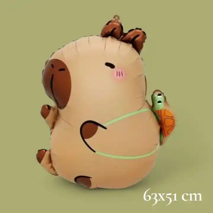 Globo Metalizado Capibara Grande 63x51 cm Descripción: Celebra con estilo con este adorable globo metalizado de Capibara tamaño grande (63x51cm). Ideal para fiestas, cumpleaños y decoraciones temáticas. Su diseño tierno y divertido lo convierte en el centro de atención en cualquier celebración. * Incluye: 1 globo metalizado Capibara * Importante: El globo se entrega desinflado. * No incluye accesorios ni elementos adicionales mostrados en la imagen, solo el globo descrito.