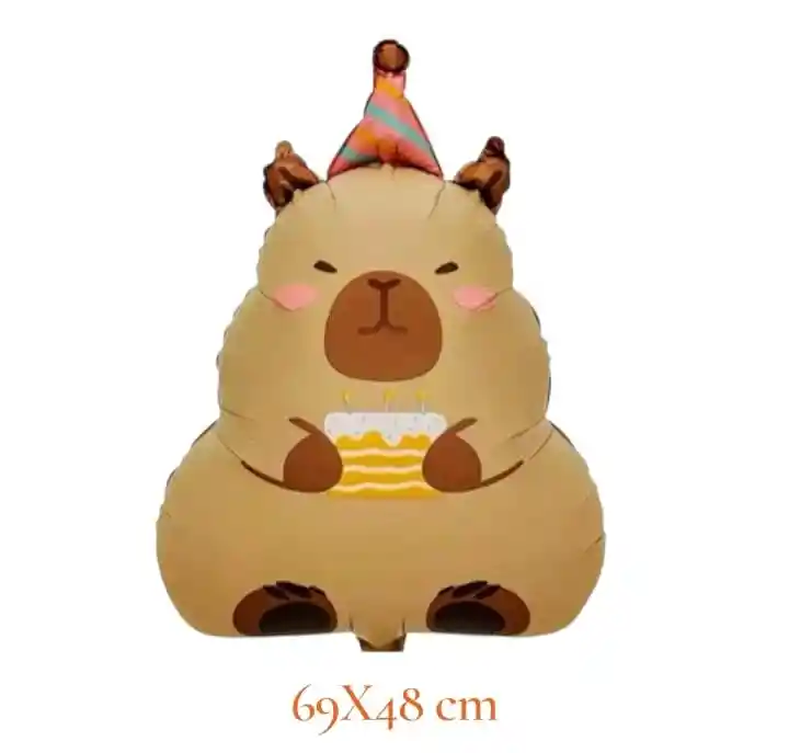 Globo Metalizado Capibara Grande 69x48 cm Descripción: Celebra con estilo con este adorable globo metalizado de Capibara tamaño grande (69x48 cm). Ideal para fiestas, cumpleaños y decoraciones temáticas. Su diseño tierno y divertido lo convierte en el centro de atención en cualquier celebración. * Incluye: 1 globo metalizado Capibara * Importante: El globo se entrega desinflado. * No incluye accesorios ni elementos adicionales mostrados en la imagen, solo el globo descrito.