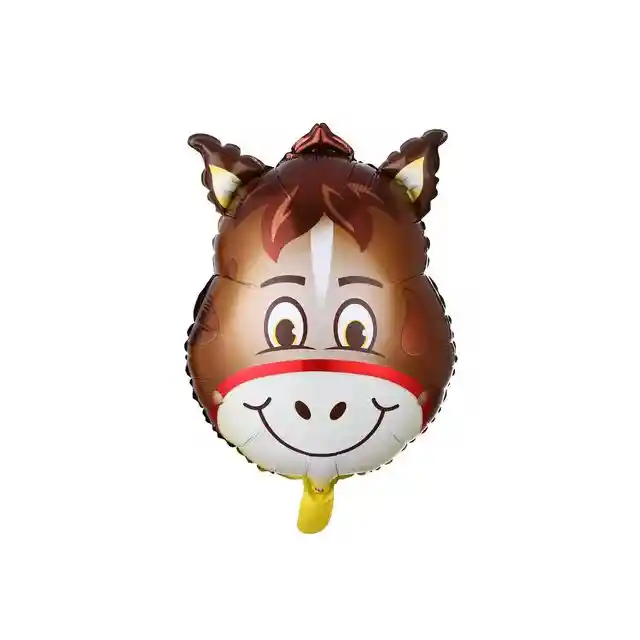 Globo metalizado en forma de cara caballo, en tamaño de 50 x 55 cm, sin inflar. Incluye: Pitillo para inflar el globo con aire.
