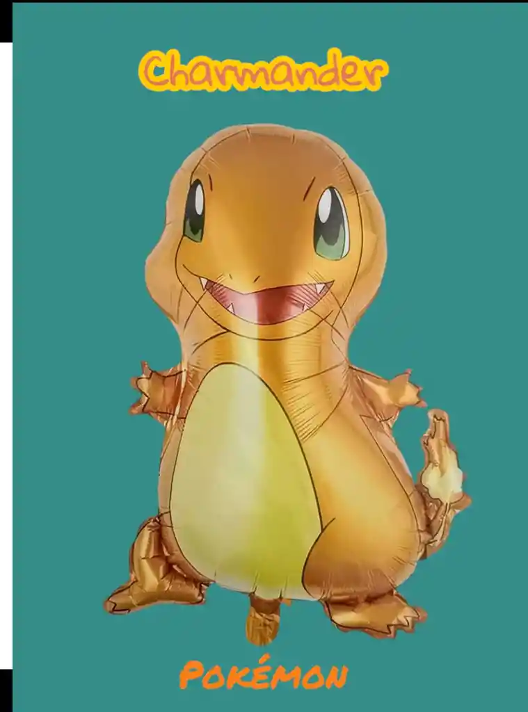 Globo Metálizado X1 Unidad •1 Globo Charmander Pokémon 46x63cm Nota: •El Globo viene desinflado •Se puede inflar con Helio
