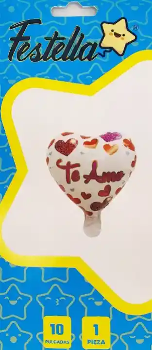 Globo Metalizado Corazon Te Amo Blanco Corazones Rojos 10" Festella