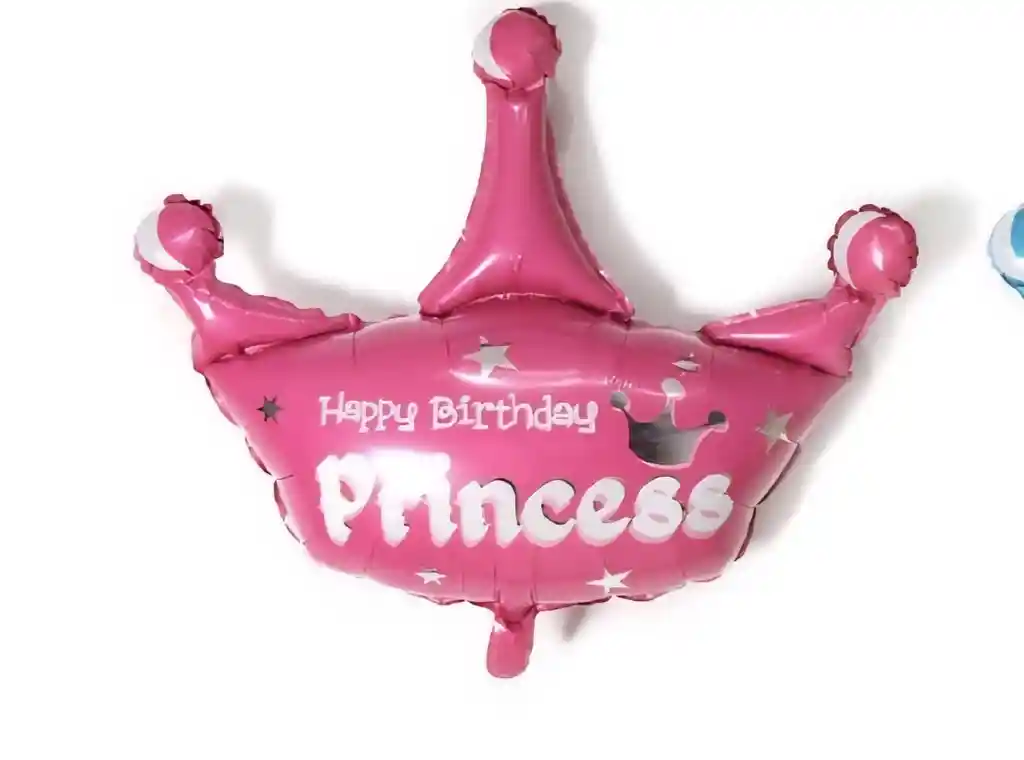 Globo Metalizado Corona Princess Rosada, 45 x 40 cms , Para Cumpleaños, Fiestas, Decoraciones