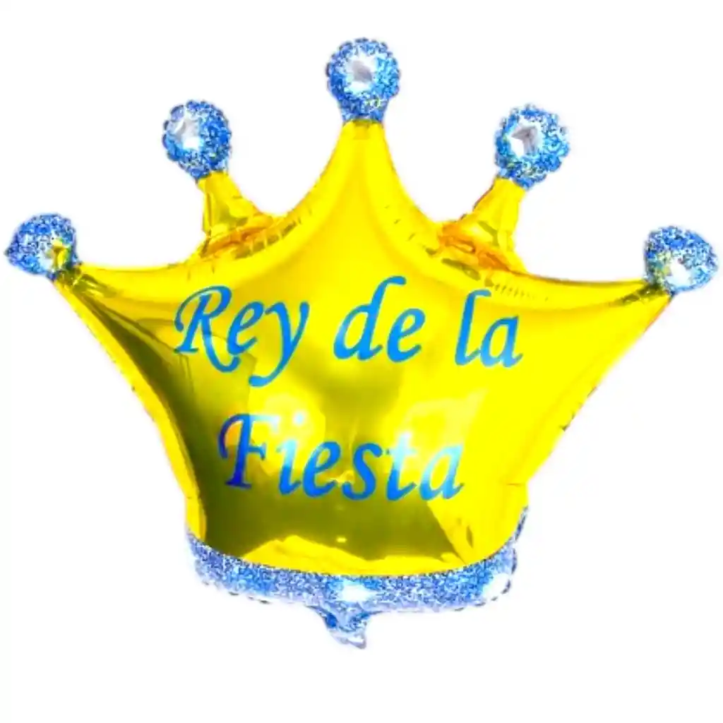 Globo metalizado de corona dorado azul REY DE LA FIESTA