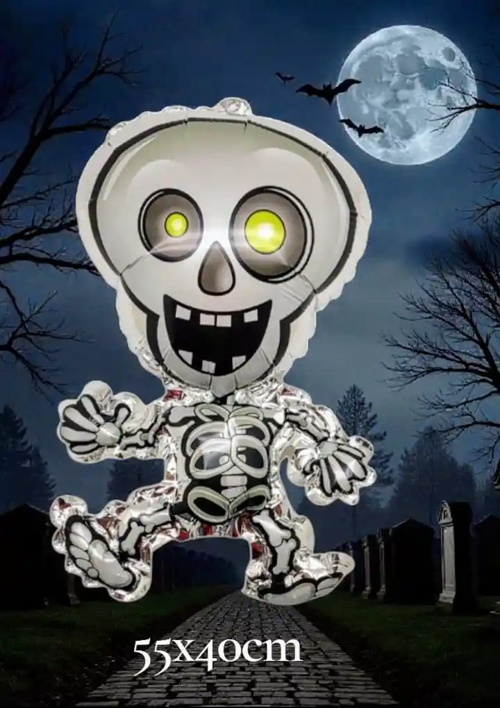 🎃 Globo Metalizado Esqueleto Blanco Mediano 55x40 cm – Decoración Halloween Descripción: Agrega un toque divertido y espeluznante a tu celebración con este Globo Metalizado Esqueleto Blanco de 55 x 40 cm. Su diseño brillante y simpático lo convierte en el complemento perfecto para decorar fiestas de Halloween, cumpleaños temáticos o eventos escolares. Ideal para colocar en entradas, mesas dulceras o combinarlos con otros globos de temporada. Material: foil metalizado resistente Tamaño: 55 x 40 cm (aprox.) Color: blanco con detalles negros y plateados Se puede inflar con aire o helio Reutilizable y fácil de inflar 🕸️ Nota: El producto incluye solo el globo, los demás elementos decorativos son de ambientación.