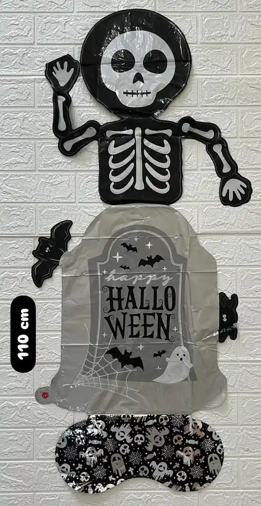 GLOBO METALIZADO ESQUELETO CON TUMBA 110CM DECORACION DE HALLOWEEN COD.4410 (( LAS MEDIDAS DEL GLOBO SON DEL GLOBO DESINFLADO ))