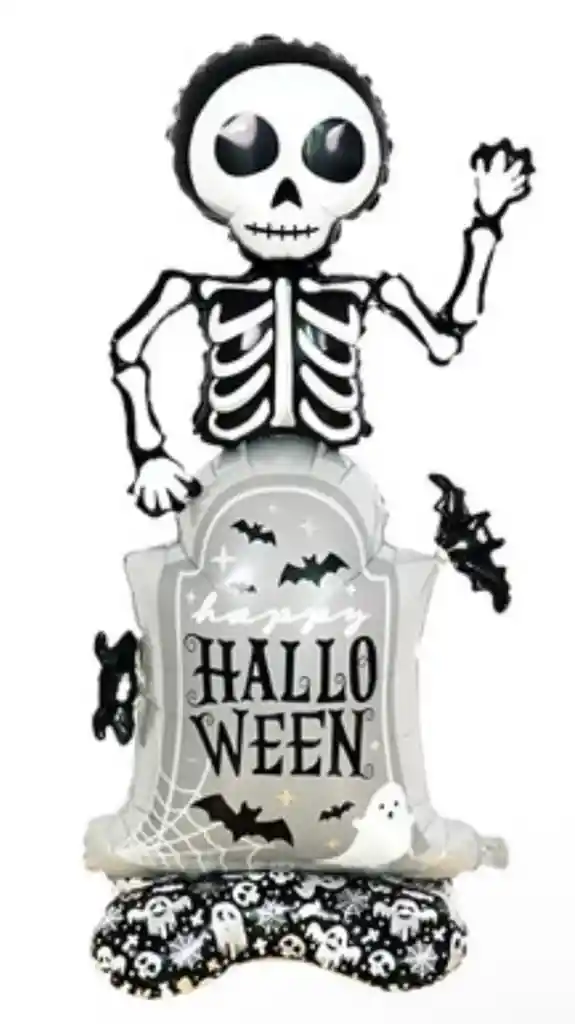 GLOBO METALIZADO ESQUELETO CON TUMBA 110CM DECORACION DE HALLOWEEN COD.4410 (( LAS MEDIDAS DEL GLOBO SON DEL GLOBO DESINFLADO ))