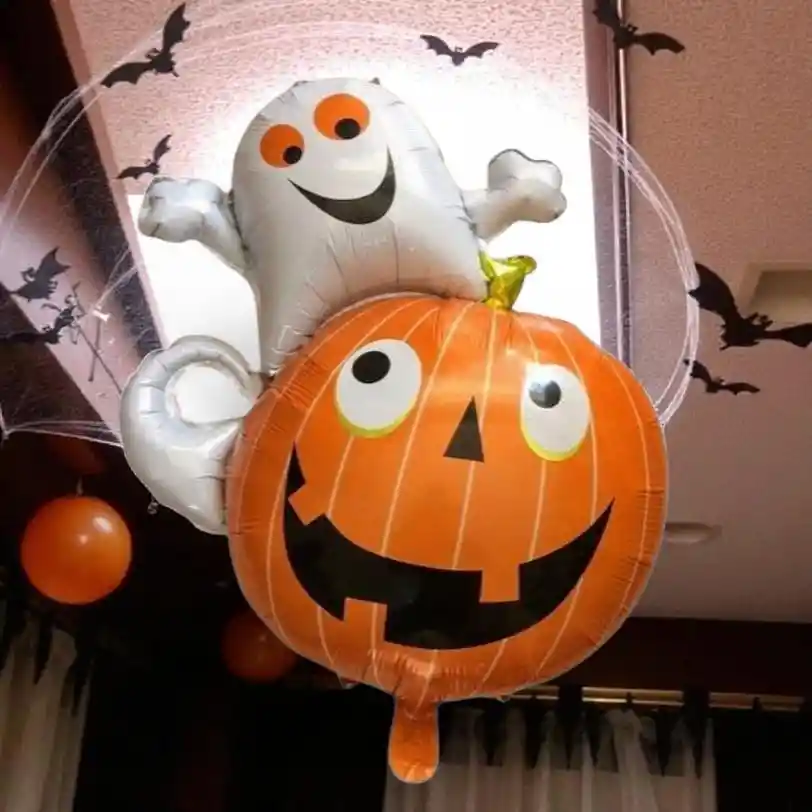 Globo Metalizado Fantasma con Calabaza Halloween 35x25 cm Descripción: Decora tu fiesta con este encantador globo metalizado en forma de fantasma con calabaza, perfecto para ambientar espacios de Halloween con un toque alegre y divertido. Hecho en material duradero, puede inflarse con aire o helio según prefieras. Tener en cuenta: •Solo incluye el globo. Los demás elementos son de ambientación. •El globo se envía desinflado