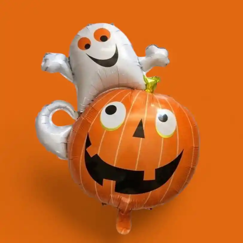 Globo Metalizado Fantasma con Calabaza Halloween 35x25 cm Descripción: Decora tu fiesta con este encantador globo metalizado en forma de fantasma con calabaza, perfecto para ambientar espacios de Halloween con un toque alegre y divertido. Hecho en material duradero, puede inflarse con aire o helio según prefieras. Tener en cuenta: •Solo incluye el globo. Los demás elementos son de ambientación. •El globo se envía desinflado