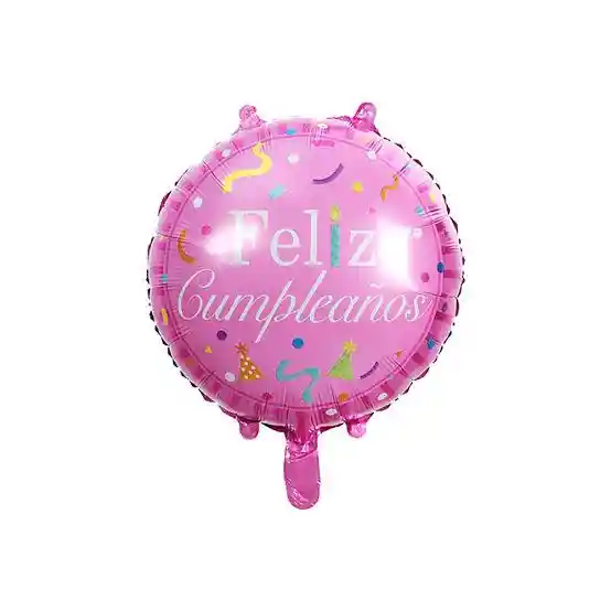 Globo metalizado Feliz Cumpleaños en color rosado en tamaño 18" inflado con helio. Duración: 1 día inflado con helio aproximadamente. (Nuestro helio es 100% certificado NO es inflamable)