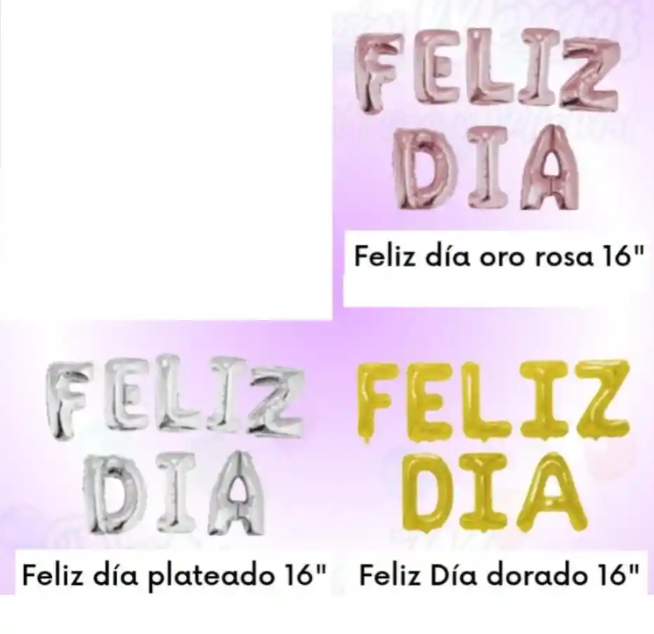 Globo Metalizado Feliz Dia 16" Colores Dorado Plateado Oro rosa Pedir el color que deseas de lo contrario se enviara el color segun stock de la tienda