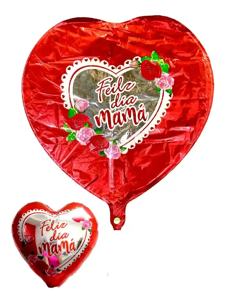 Globo Metalizado Feliz Dia Mama Corazon 18" 46 Cms, ideal para decorar las fiesta de tu mami