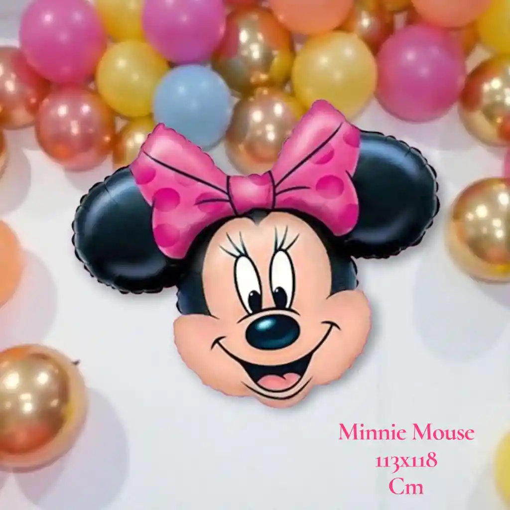 Globo metalizado con diseño de Minnie Mouse, ideal para decorar fiestas infantiles y temáticas. Medidas aproximadas: 113x118 cm. •Solo incluye el globo mencionado los demás accesorios mostrados son decorativos para ambientar la imagen. •Se envía desinflado.
