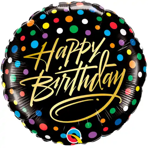 Globo circular metalizado Happy Birthday de 18 inch. Se entrega inflado con aire.