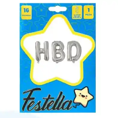 Globo Metalizado HBD 16" Festella Plateado 16" X 1 Unidad Festella
