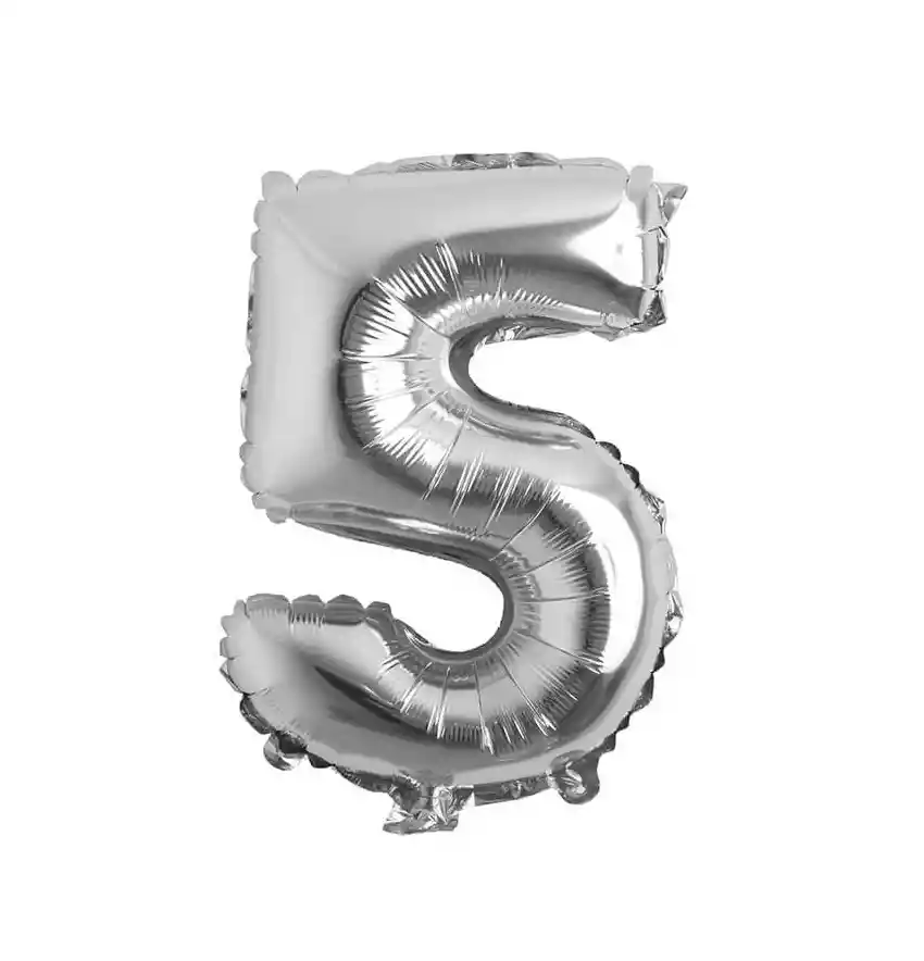 🎈 Globo Metalizado Inflable de 16"-18" (43 cm aproximadamente) Numero 5 color Plateado ⚠️ SE ENVÍA DESINFLADO. Se puede inflar con aire o con helio. 🎈 Para inflar con aire sus globos metalizados o globos de látex, tenemos disponible en nuestra tienda el INFLADOR MANUAL. No olvide incluirlo en su pedido.