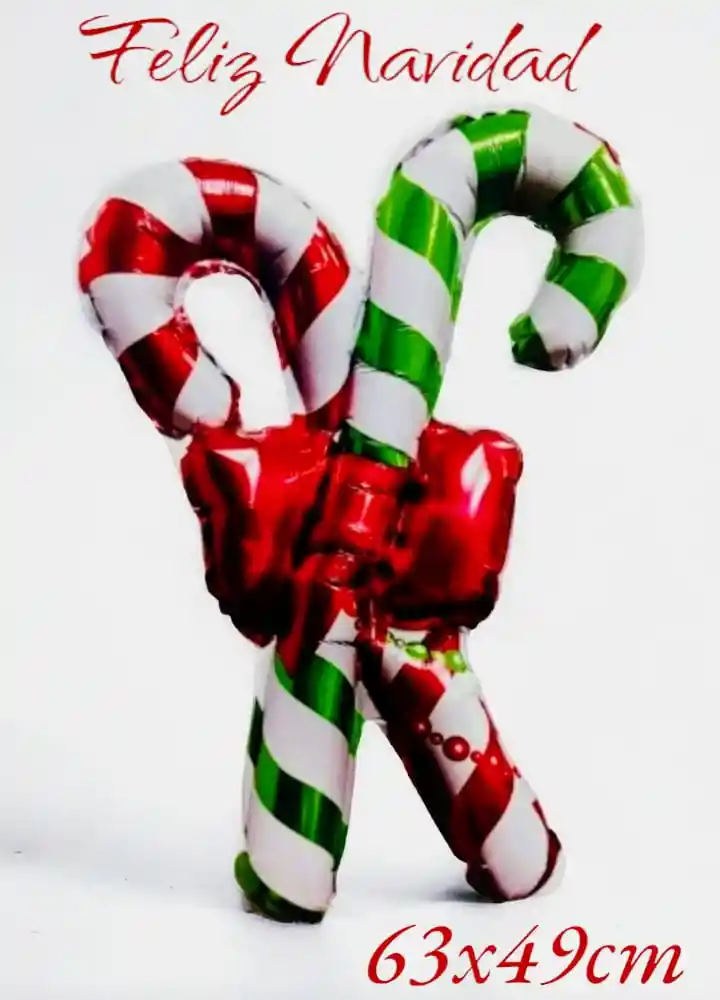 Globo Metalizado Navidad Bastones Por la compra llevas: •1 Globo Duo Bastones de Navidad MEDIDAS: 63×50cm •Se pueden inflar con Helio •Los Globos se entregan desinflados