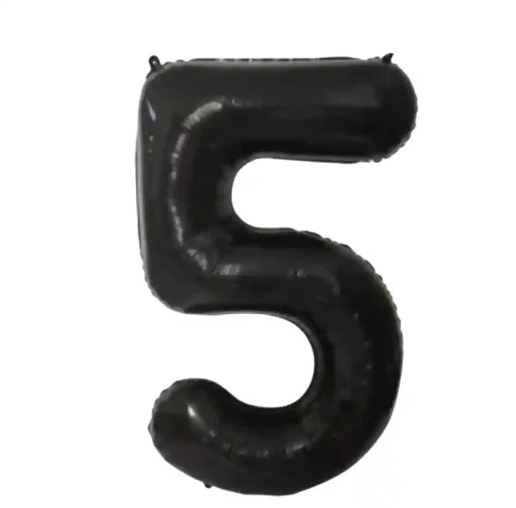 Globo Metalizado Numero 5, 16 Pulgadas, Color Negro, Para Fiestas, Cumpleaños