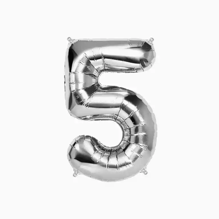 Haz que tu evento luzca espectacular con el globo metalizado número 5 en color plateado de 32" pulgadas. Su brillo mate lo convierte en un elemento decorativo imprescindible. El globo Se entrega sin inflar.