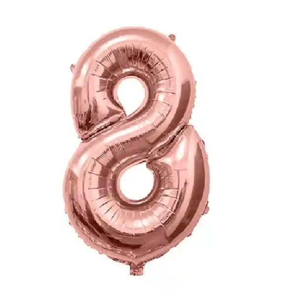 El globo metalizado número 8 oro rosa de 16" pulgadas aporta un toque exclusivo a la decoración, perfecto para fiestas temáticas y aniversarios. El globo Se entrega sin inflar.